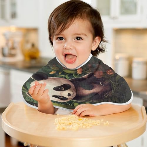 J JOYSAY Panda Flowers Leaves Dark Baby Burp Cloths for Boys Girls Large 22''x11'' Cotton 4 Layer Baby Bibs for Infant Spit Up one sizex4