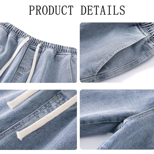 Men's Baggy Jeans Y2k Elastic Waist Skater Jeans Wide Leg Plain Drawstring Denim Pants Teen Boys Hip Hop Streetwear