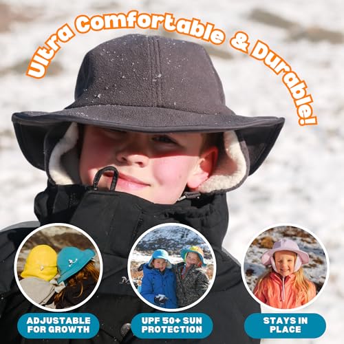 SwimZip UPF 50+ Sun Protective Kids' Wide Brim Fleece Winter Sun Hat