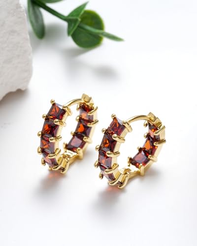 Mesovor Cubic Zirconia Gold Hoop Earrings for Women Trendy, 18K Gold Plated Lightweight Huggie Hoops Earrings | Green Black Red Stones CZ Earrings Jewelry